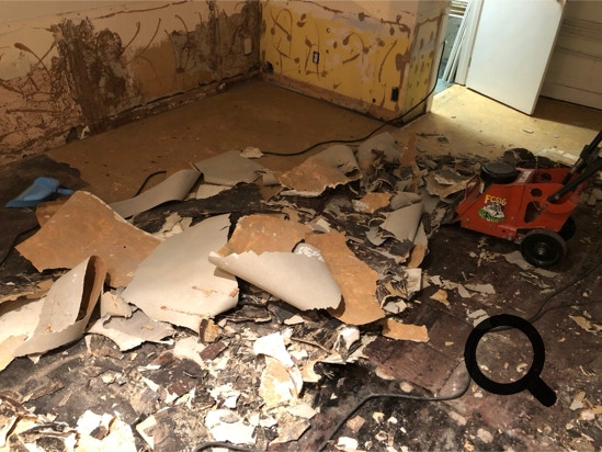 This what the floor looked like after pulling up 2 layers of vinyl.