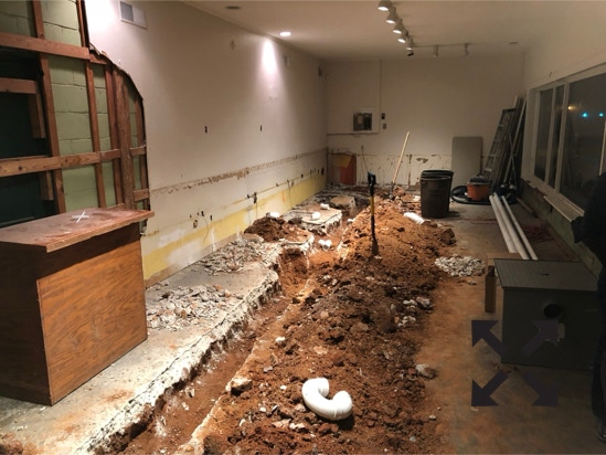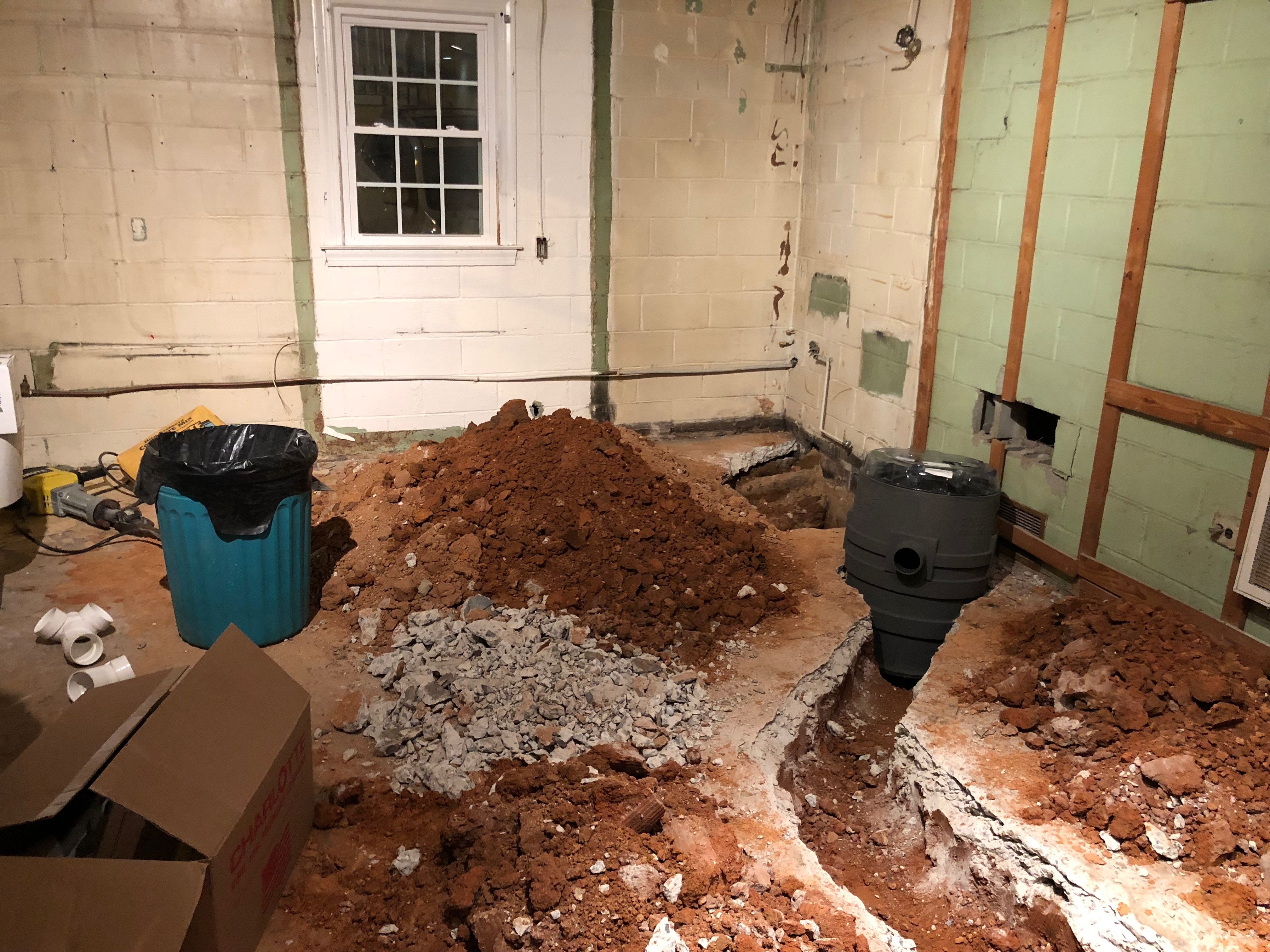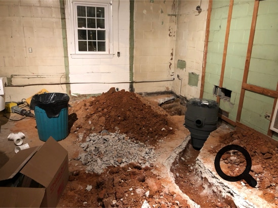 The concrete had to be removed for the plumbing.