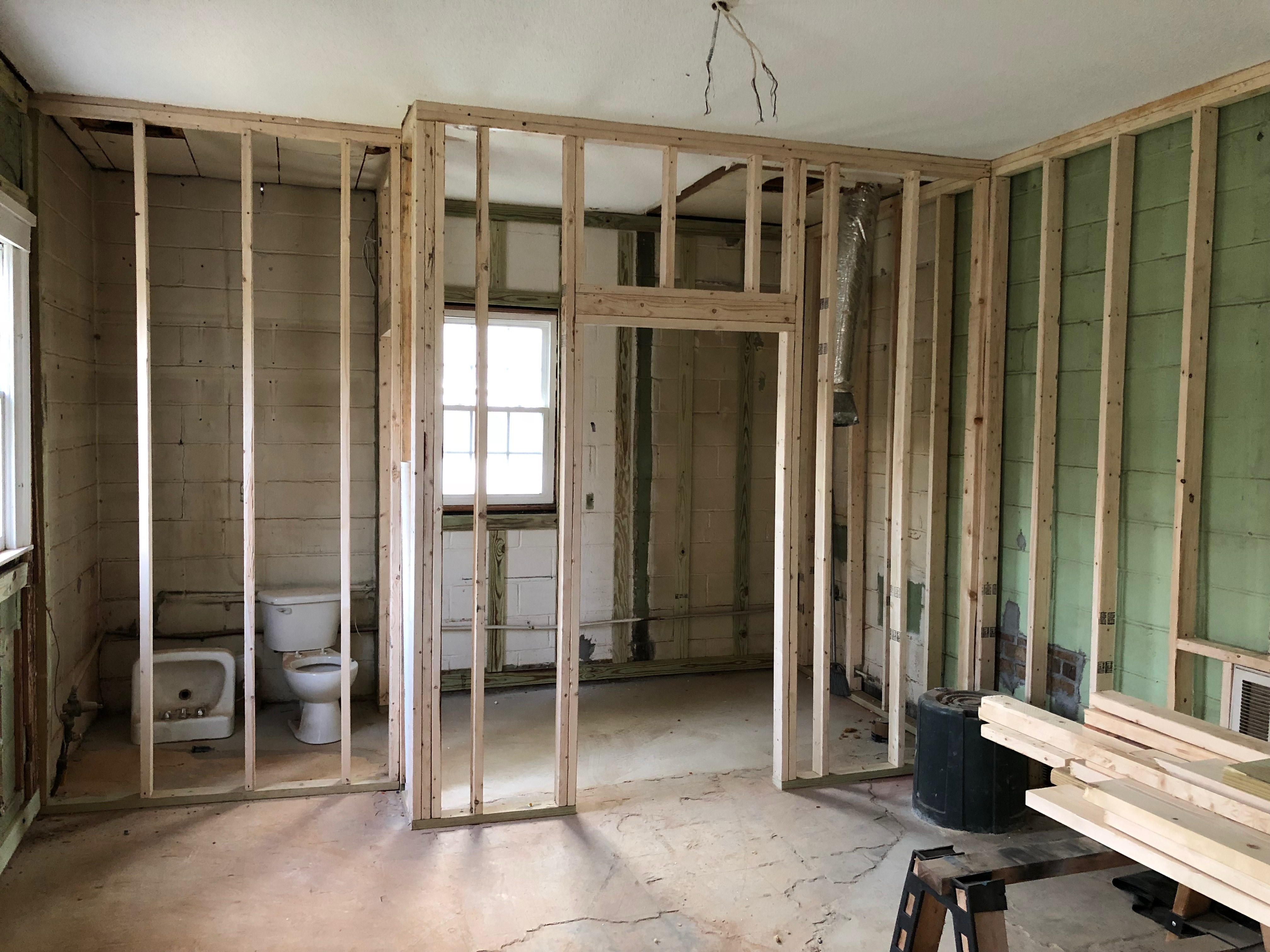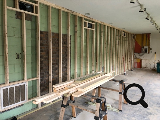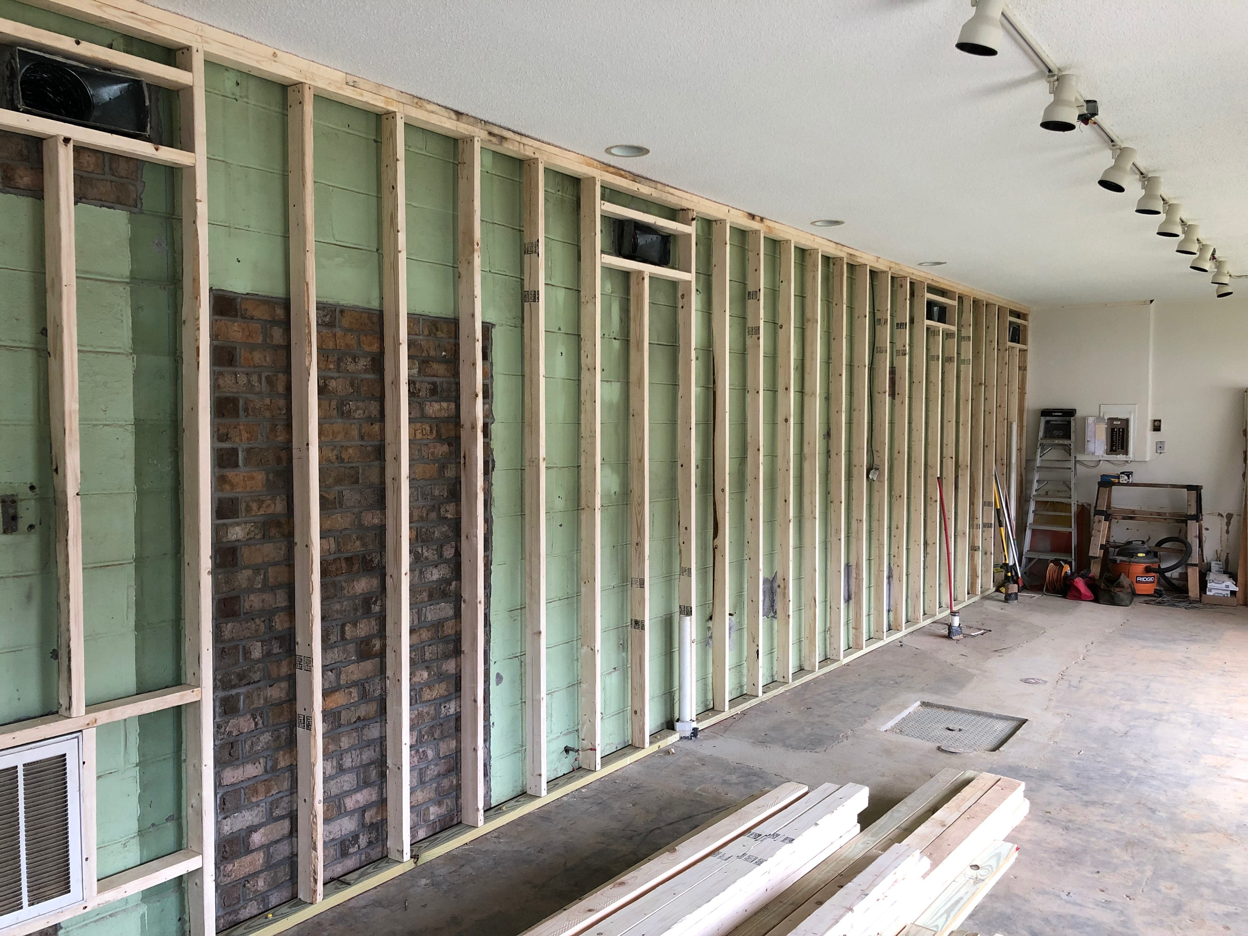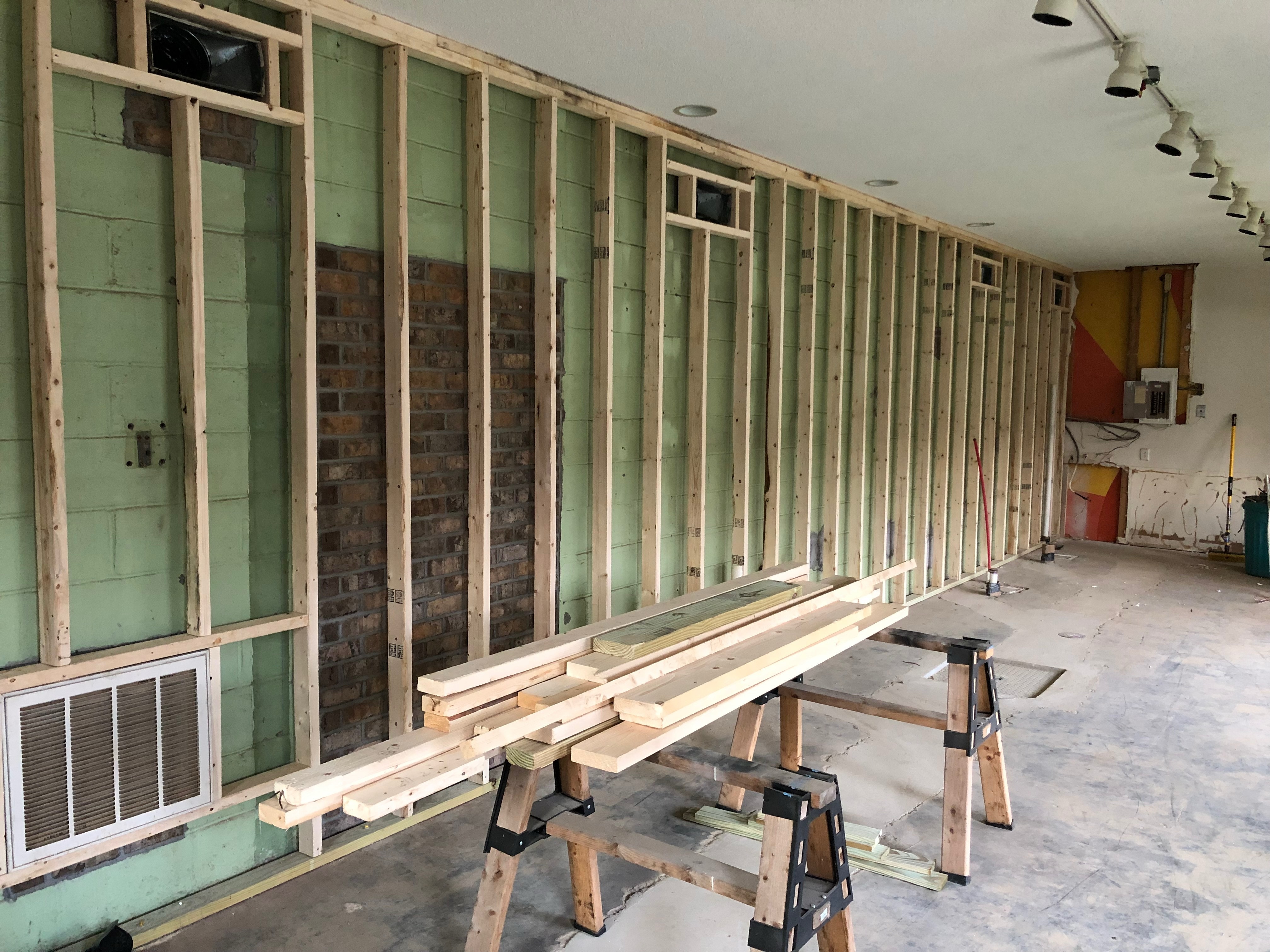 “Secret” door bricked in and framing begins.